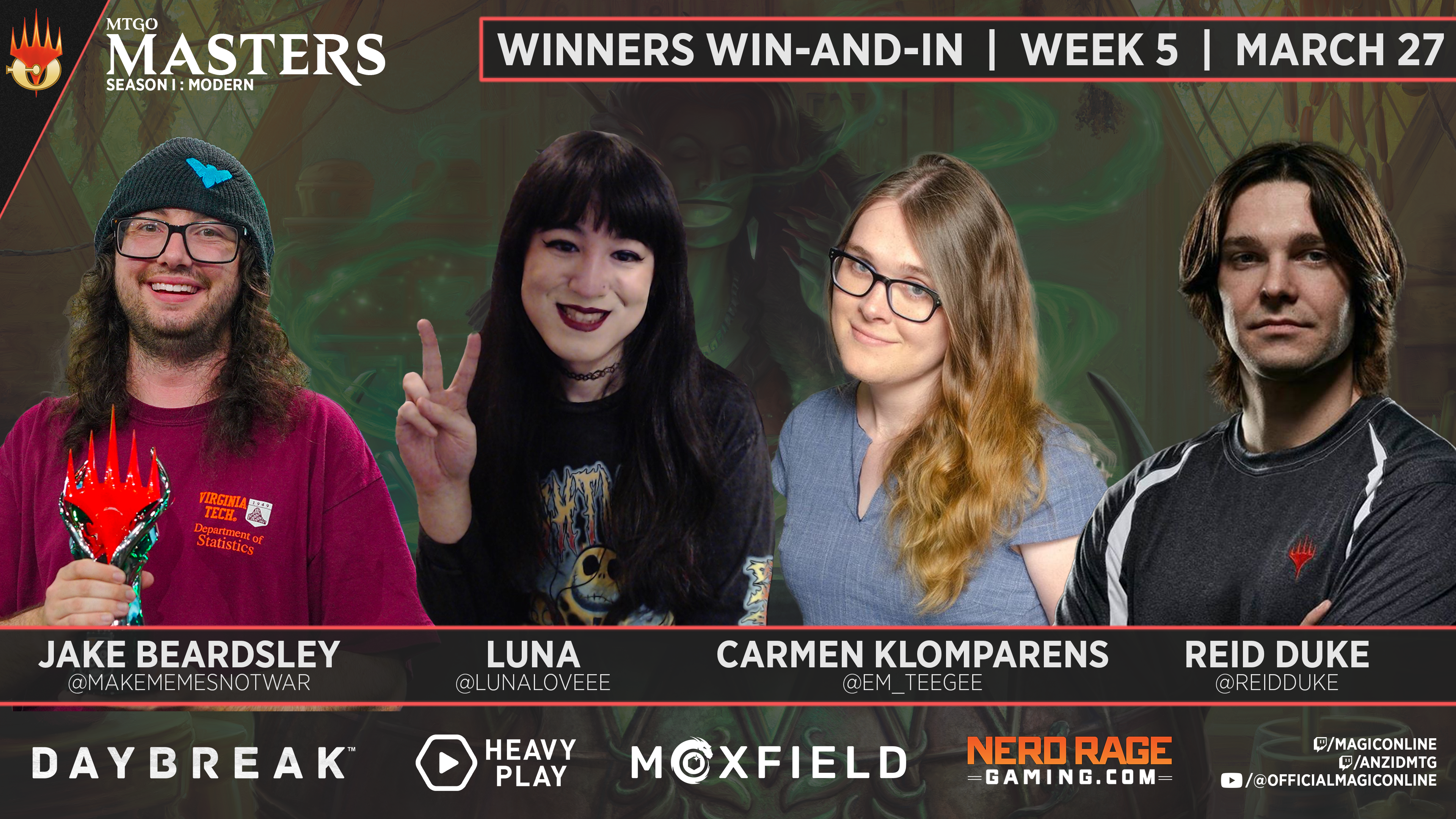 Dieciséis celebridades importantes de Magic se enfrentan en un torneo de 12 semanas para determinar quién es mejor resolviendo el metajuego de Moderno. Anuraag Das y Will Hall regresan como anfitriones con comentarios adicionales de los propios jugadores durante la transmisión.