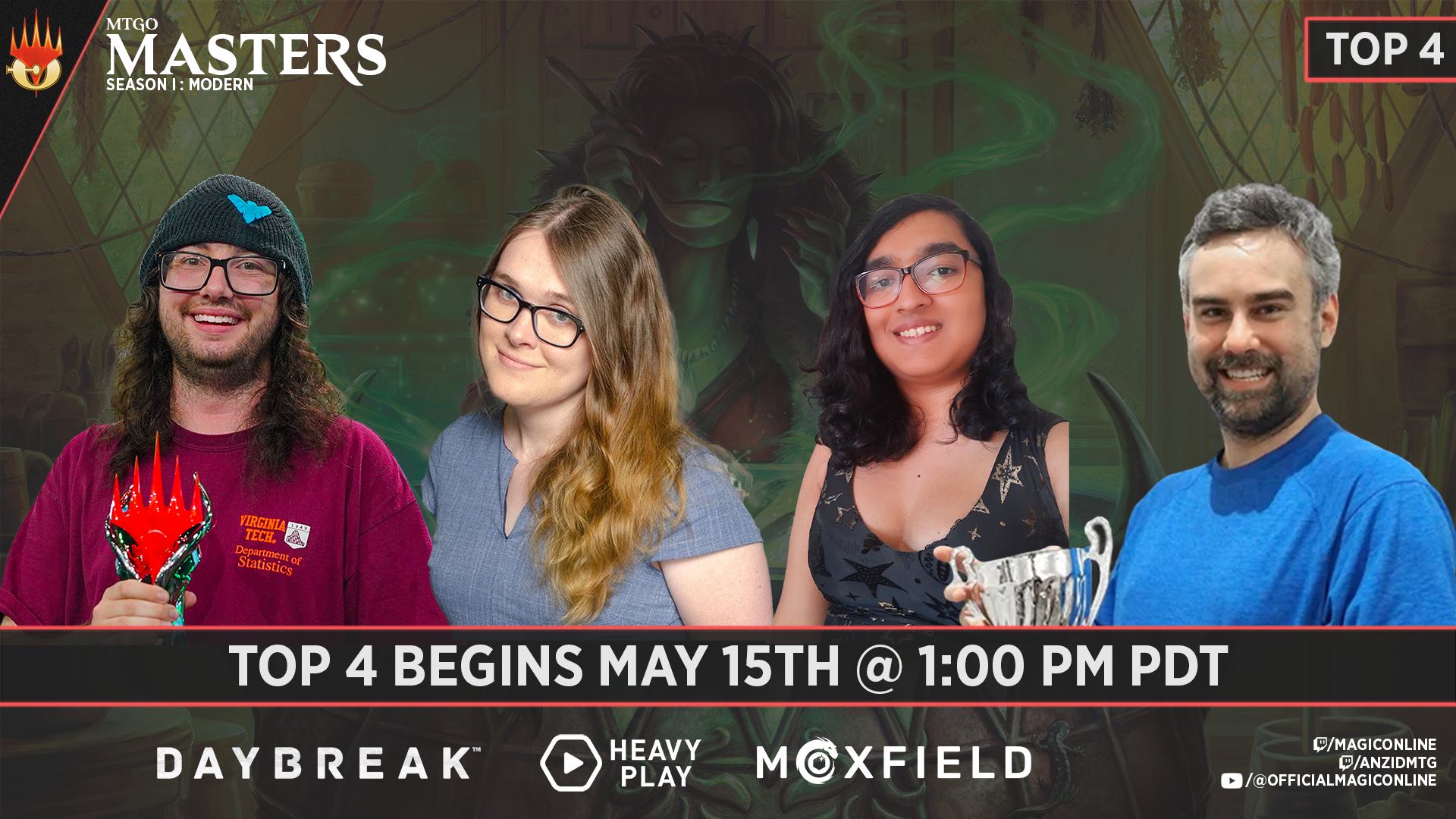 En la final de la Temporada 1 del MTGO Masters, las cuatro celebridades de Magic que quedan del grupo original de 16 luchan por el derecho de fanfarronear, un avatar exclusivo y otros beneficios. En las semifinales, un par de diseñadores de Studio X de Wizards of the Coast compiten contra un dúo de ganadores de eventos importantes anteriores: