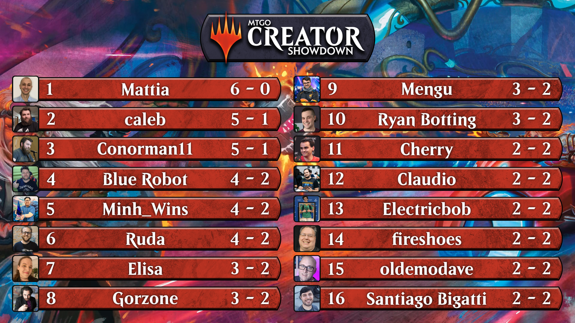 El fin de semana pasado, los creadores de contenido de Magic compitieron en el MTGO Creator Showdown con el formato Standard. Mattia se llevó la victoria con un impresionante récord de 6-0, ganando $1,250 USD con su mazo Dimir Midrange. CalebD y ConnorMan11 también destacaron con sus mazos Golgari Roots y Gruul Bash, respectivamente. ¡No te pierdas la próxima edición el 15 de marzo, esta vez con formato Modern!