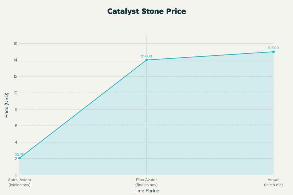 En términos de mercado, Catalyst Stone ha vivido uno de los spikes más agresivos ligados a Avatar Commander.