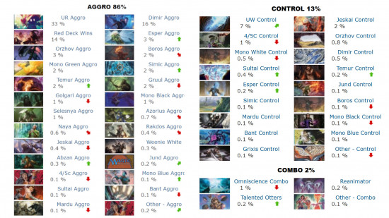 Pero todo cambió con Tarkir: Dragonstorm y, más tarde, con Final Fantasy. De pronto, la escena se redujo a tres mazos: Izzet Aggro, Mono Red y Dimir Aggro. Según MTGTop8, en los últimos meses, un 63% de los jugadores competitivos se concentra en esas listas, con Izzet Cauldron y Vivi como motores principales.