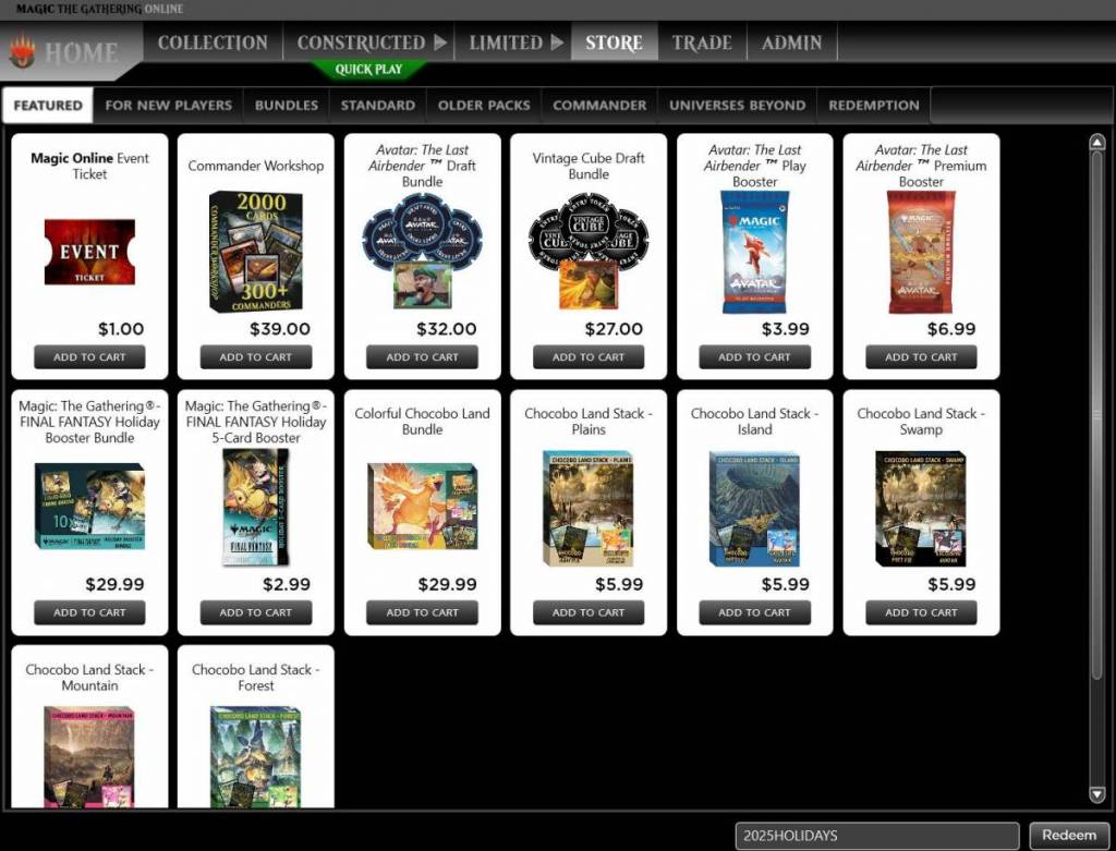 La rama digital de Magic: The Gathering—FINAL FANTASY™ lanza sus productos de Holiday en la tienda de MTGO el viernes 5 de diciembre a las 10 a. m. PT. Entre ellos: