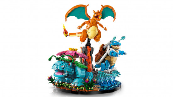 La primera oleada “adulta” de Lego Pokémon llega con tres modelos dirigidos claramente a coleccionistas y fans de alto presupuesto. El protagonista absoluto es “Venusaur, Charizard and Blastoise” (72153), un diorama de 6,838 piezas con los tres starters finales de Kanto, que se vende a $649.99 / £579.99 / €649.99 y está pensado como pieza central de vitrina.