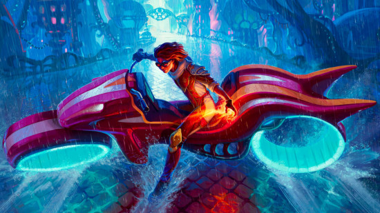 Aetherdrift fue probablemente el set más infravalorado del año: introdujo mecánicas interesantes como Exhaust y ofreció facciones variadas que, sobre el papel, daban mucho juego. El problema estuvo en el envoltorio: un mundo centrado en carreras y vehículos locos, inspirado en Wacky Races, que a muchos jugadores les costó tomarse en serio dentro del Multiverso.