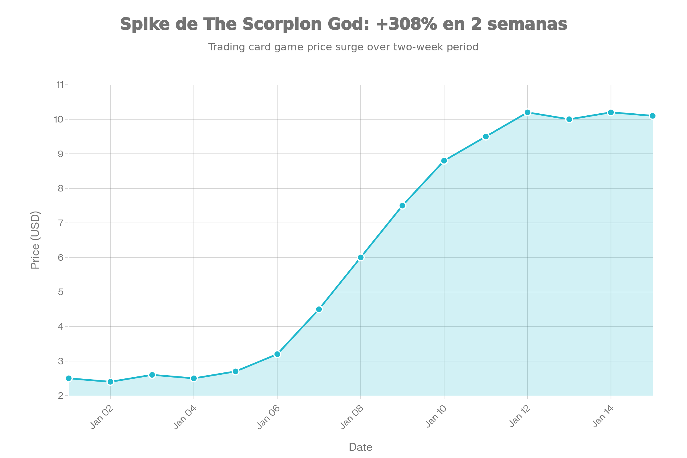 Durante semanas, The Scorpion God rondaba $1.13 como bulk de Commander, pero tras el preview de Blight y filtraciones de precon Commanders, explotó a $2.70 promedio, con ventas recientes en $4. Eso supone +308% en poco más de 14 días, impulsado por el encaje perfecto con Auntie Ool, Cursewretch, la cara del precon que pone -1/-1 a voluntad.