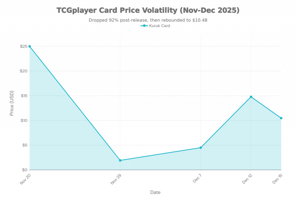 Como ocurre con muchos míticos nuevos, The Legend of Kuruk arrancó las preventas a precios artificialmente inflados, rondando los 25 dólares antes de que Avatar saliera a la venta. Tras el lanzamiento, el mercado se ajustó con fuerza: el precio cayó en picado hasta un mínimo de 1,93 dólares, donde se mantuvo durante un breve periodo mientras las listas de Estándar se estabilizaban.